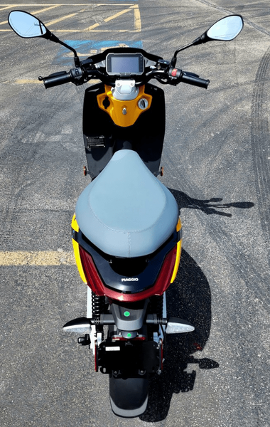The Active version of the Piaggio 1 unleashes all its energy to deliver a top speed of 37 mph. With a range of up yo 41 miles in Sport mode and up to 53 miles in ECO, you will enjoy a lively, fun ride, while red flourishes on the rear swingarm add a striking, sophisticated touch as you zip around.