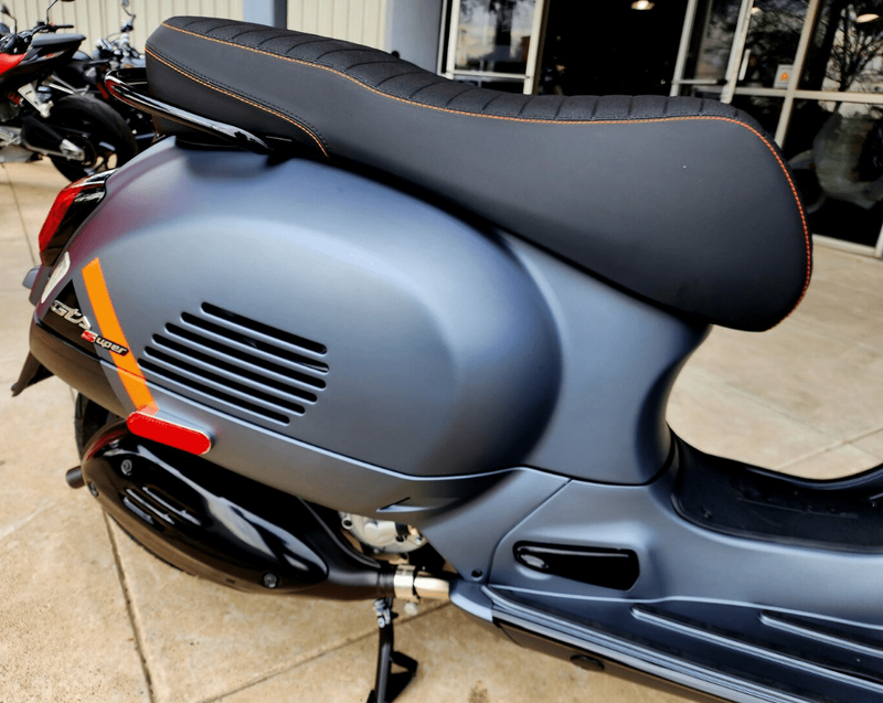 The 2024 Vespa GTS 300 SuperSport brings together Vespa’s legendary design with a sharper, sport-inspired edge. Powered by the high-performance 300cc HPE engine, it delivers exhilarating acceleration, smooth power delivery, and confidence on both city streets and open roads. With matte finishes, bold graphics, and advanced tech like keyless ignition and LED lighting, the GTS SuperSport stands out as the most dynamic and commanding Vespa in the lineup — perfect for riders who want performance with unmistakable style.