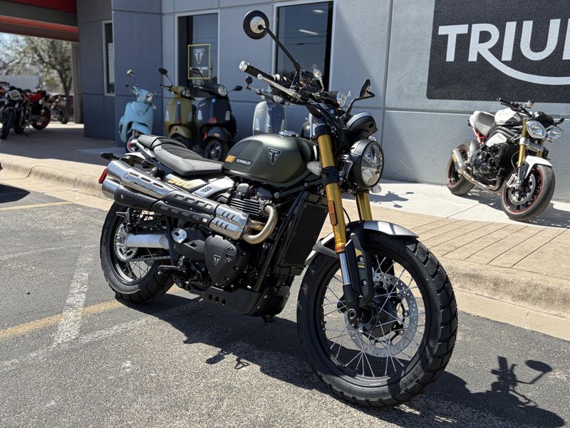 900cc Bonneville Twin - Smooth, torque-forward power with a 270-degree firing interval and dedicated Scrambler tune.