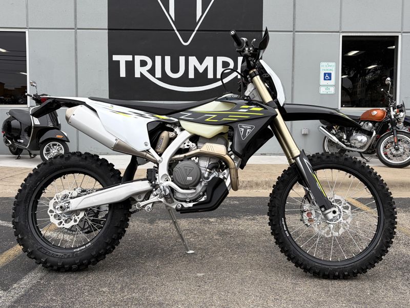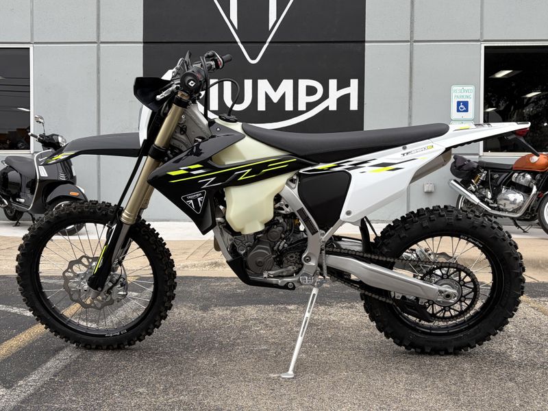 The 2026 Triumph TF 250-E is Triumph’s first production electric motocross motorcycle, developed directly from the company’s TF MX racing program. Built around a lightweight aluminum chassis, premium KYB suspension, and a high-output electric motor, the TF 250-E delivers instant torque, sharp handling, and low-maintenance performance for competitive riders. It brings Triumph’s race engineering into the electric MX world with a focus on agility, durability, and tunable power delivery.