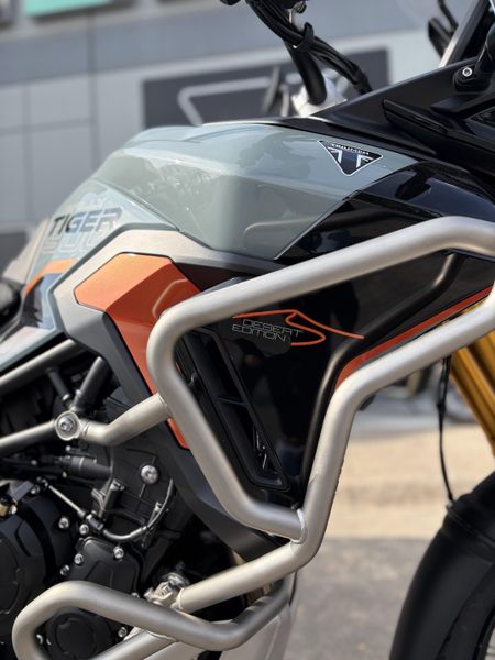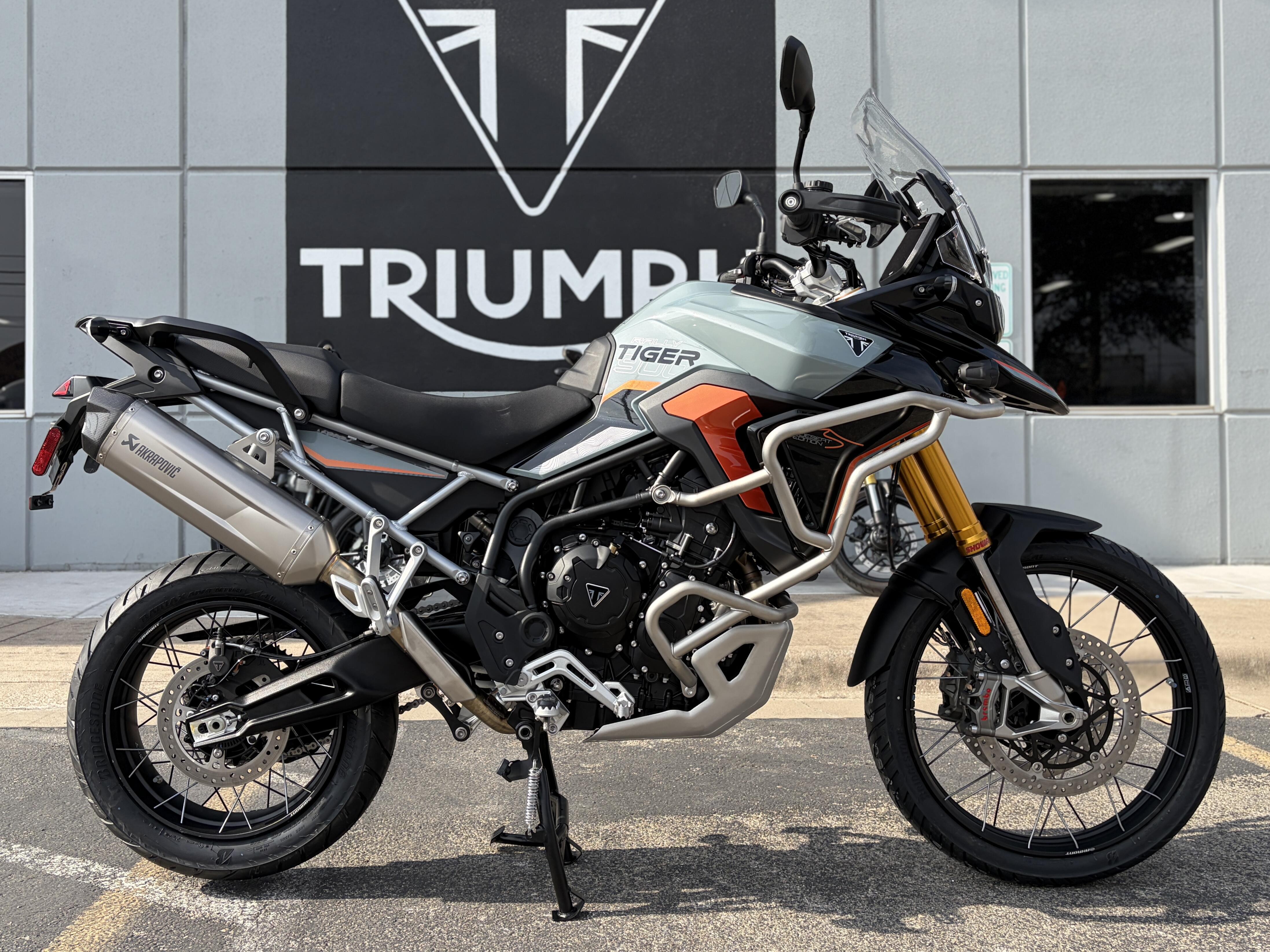 The New 2026 Triumph Tiger 900 Rally Pro – Desert Edition is built for riders who want true off-road capability and real touring comfort. It pairs the 888cc T-Plane triple with long-travel Showa suspension, tubeless spoked wheels, and premium protection for rough terrain. With Desert Edition graphics, bold Baja Orange accents, and a standard Akrapovič silencer, it looks as tough as it rides.
